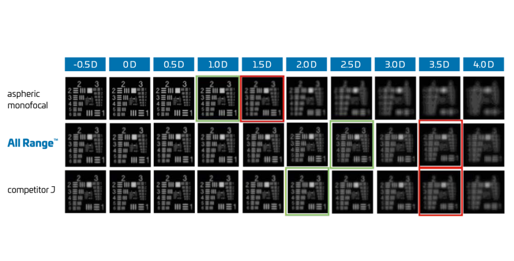 • Dioptriebereich von 5.0 – 36.0 in halben Schritten