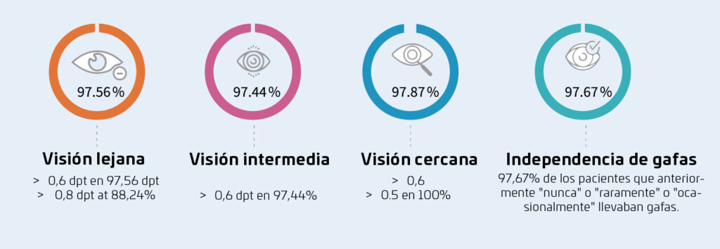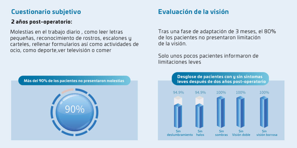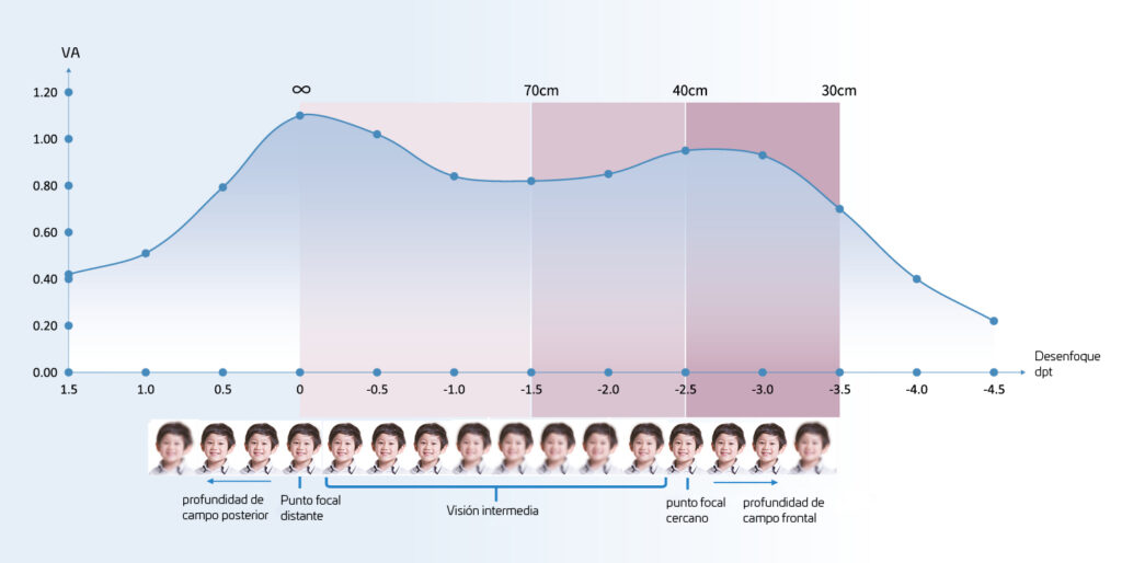 Las aberraciones disminuyen gradualmente en la zona periférica.Con pupila dilatada no aparecen interferencias molestas que afecten la calidad de la visión