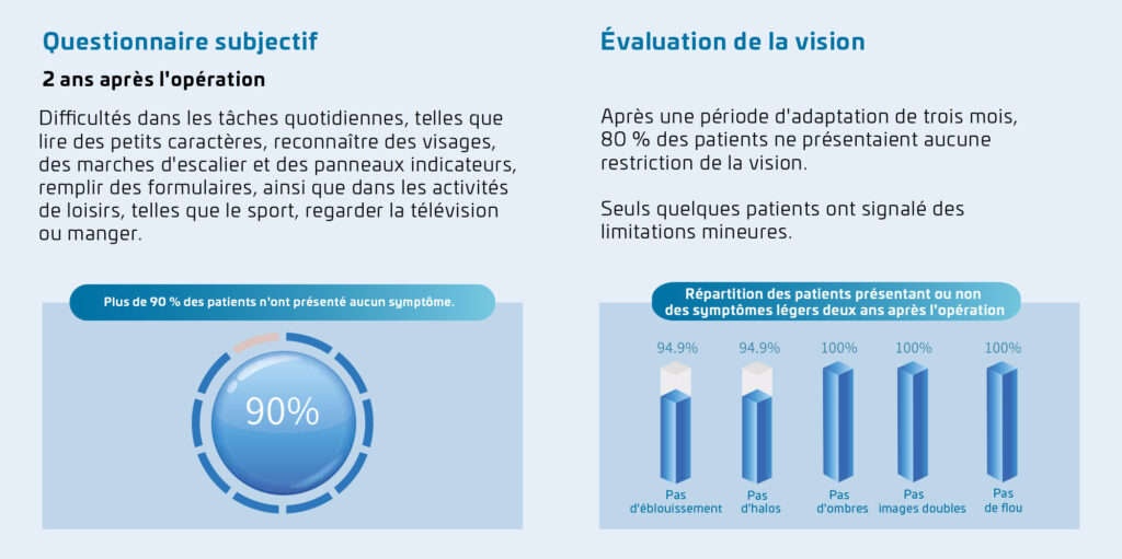 Les aberrations diminuent progressivement dans la zone périphérique. Lorsque la pupille est dilatée, aucune interférence gênante n’apparaît qui pourrait nuire à la qualité de la vision.