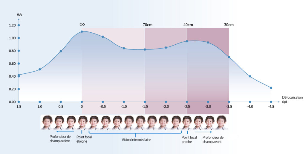 vision de près à la vision de loin, sans perturbations. Une vision nette de près et une excellente acuité visuelle dans la zone intermédiaire de 40 à 70 cm.